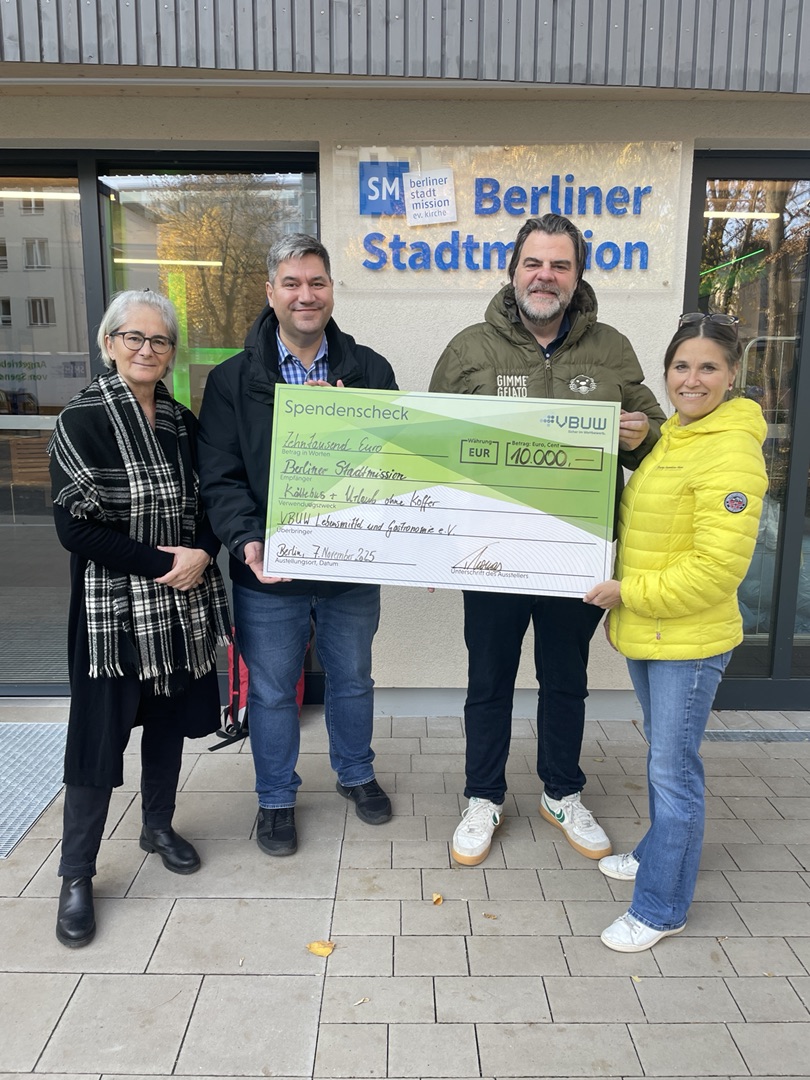 Am 9. Dezember 2023 durfte unsere Geschäftsführerin einen Spendenscheck des VBUW in Höhe von 5.000,00 € an das Franziskanerkloster in Berlin Pankow überreichen, das täglich bis zu 250 Gäste mit einer warmen Mahlzeit versorgt.